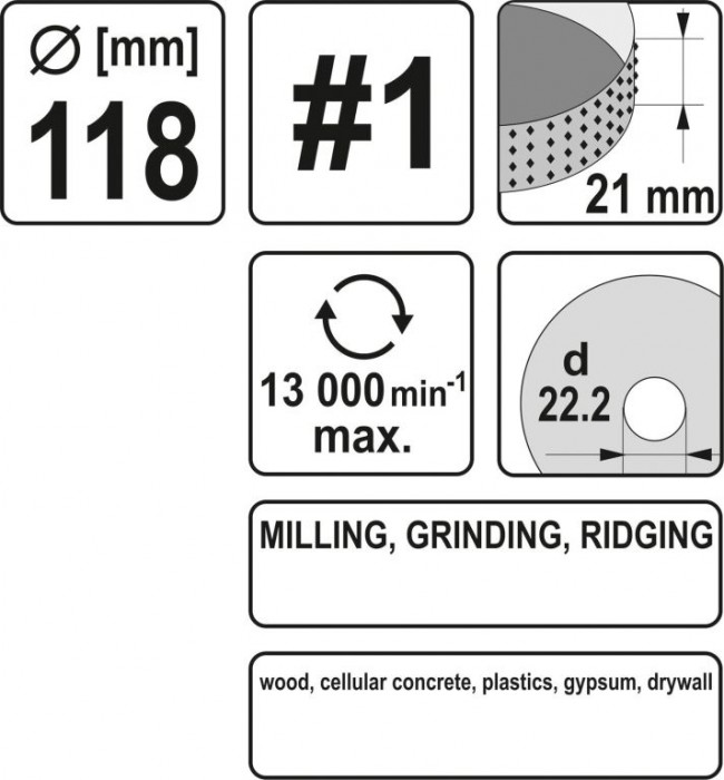 Popis: Rotační rašple frézovací univerzální 118 mm