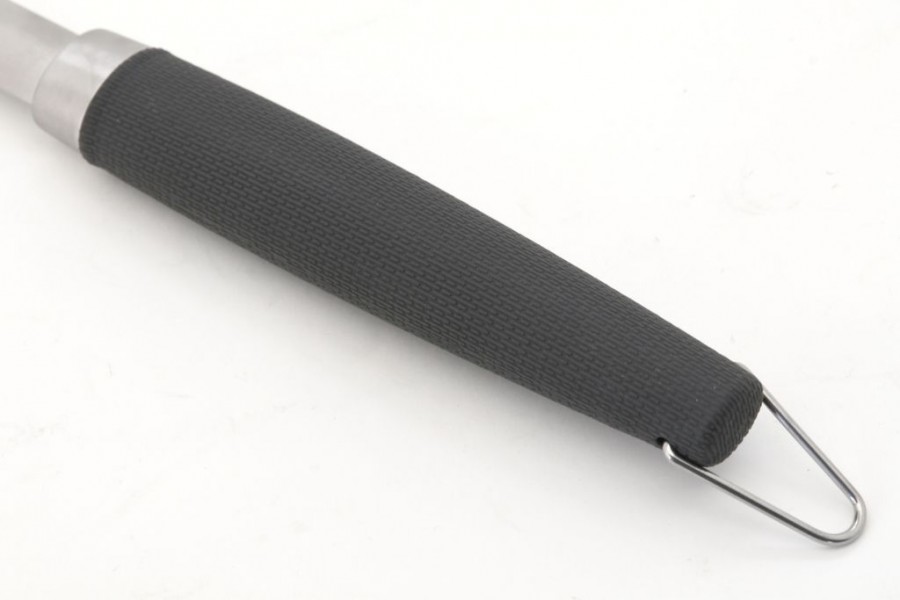 Zhotovení z kvalitní oceli s tloušťkou 1,8 mm. S rukojetí z teplotě odolného materiálu s ergonomickým tvarováním ve žraločí šedé barvě. Zakončení je opatřeno háčkem pro zavěšení. Nástroj s perforovanou obracečkou doplněnou otvírakem na zátky. Nástroj najde uplatnění zejména doma při grilování, ale i v tábořišti, v kempu a jinde v přírodě.