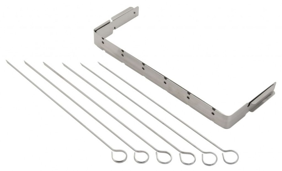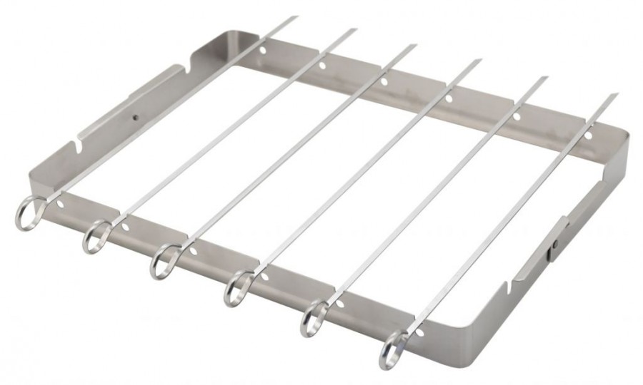 Grilovací sada na přípravu špízů skládající se z rámečku a 6x špízových jehel. V sadě je 6 kusů jehel z nerezové oceli s délkou 34 cm, které jsou určené k položení na rám ve výšce 3 cm, či k přípravě špízů při protažení otvory ve výšce 2 cm, čímž je po ugrilování vytažením jehel z konstrukce zajištěno snadné stažení pokrmu. Rámeček z nerezové oceli má rozměry 35 x 25 cm a jeho použitím je výrazně usnadněné otáčení jednotlivých špízů při jejich přípravě.