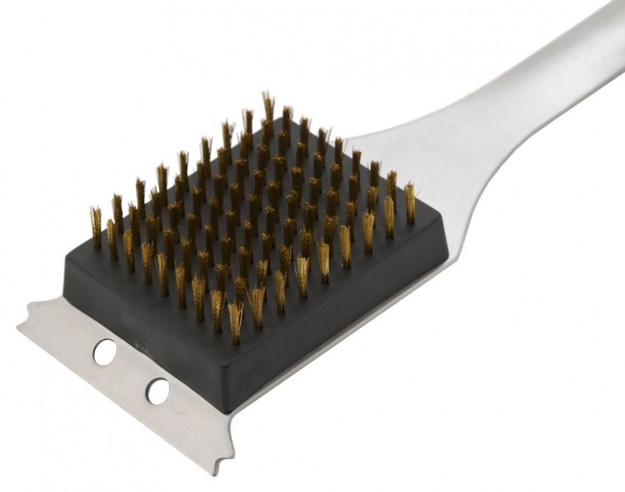 Zhotovení z kvalitní oceli s tloušťkou 1,8 mm. S rukojetí z teplotě odolného materiálu s ergonomickým tvarováním ve žraločí šedé barvě. Zakončení je opatřeno háčkem pro zavěšení. Nástroj je opatřen škrabákem s břitem 7,5 cm v přední části a samotným kartáčem z mosazi s rozměry 6,5 x 5 cm. Nástroj najde uplatnění zejména doma při grilování, ale i v tábořišti, v kempu a jinde v přírodě.