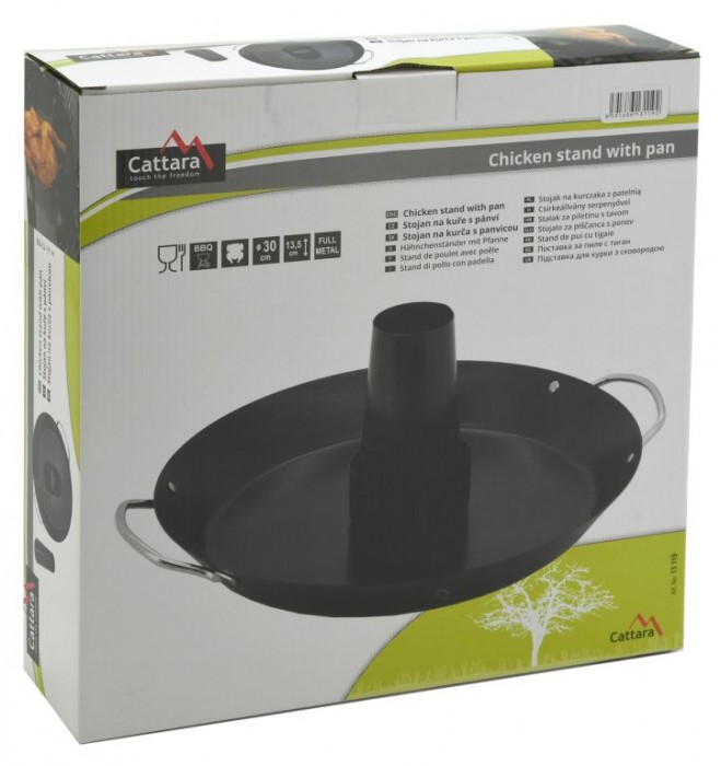 Popis: CATTARA Stojan grilovací na kuře s pánví, ocel, průměr 30 cm