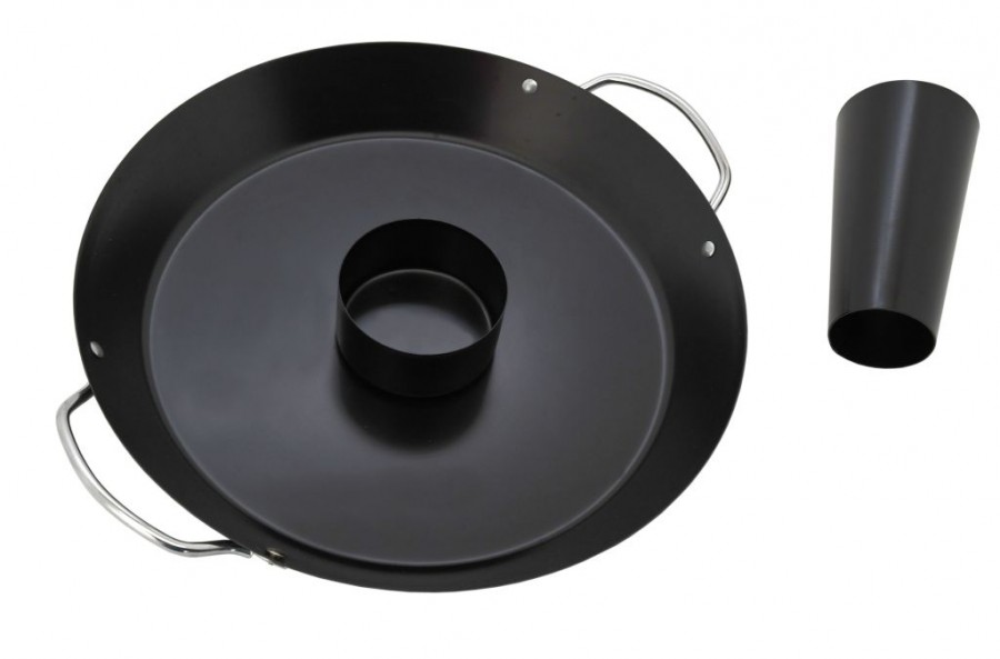 Pánev je vyrobena z kvalitní oceli černé barvy s průměrem 30 cm a hloubkou 3,7 cm. Do pánve stéká tuk z grilovaného kuřete, je však možné nalít např. pivo, případně jinou marinádu a nechat grilující se kuře absorbovat danou chuť. Případně je možné na pánvi spolu s kuřetem grilovat např. i zeleninu. Konstrukce je dvoudílná, tedy klasická pánev a kónusový stojan výšky 13,5 cm (průměr 5 a 7 cm) na kterou se posadí kuře.