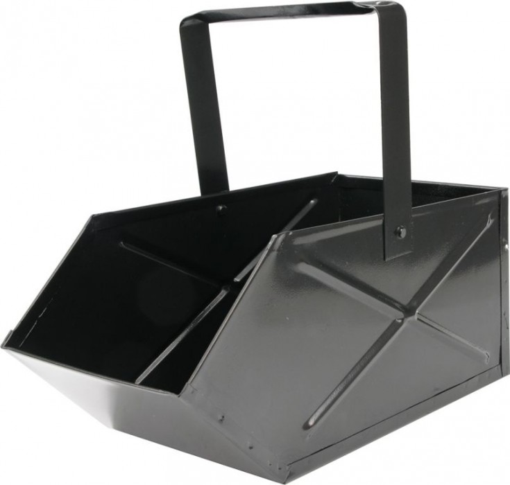 Vyrobeno z profilovaného, lakovaného plechu. Slouží k přepravě a skladování např. Uhlí, dřeva nebo jiného tuhého paliva. Sklopná rukojeť a šikmá stěna usnadňují vylévání paliva. Užitečné pro provoz kamen na tuhá paliva, krbů a sporáků na uhlí.