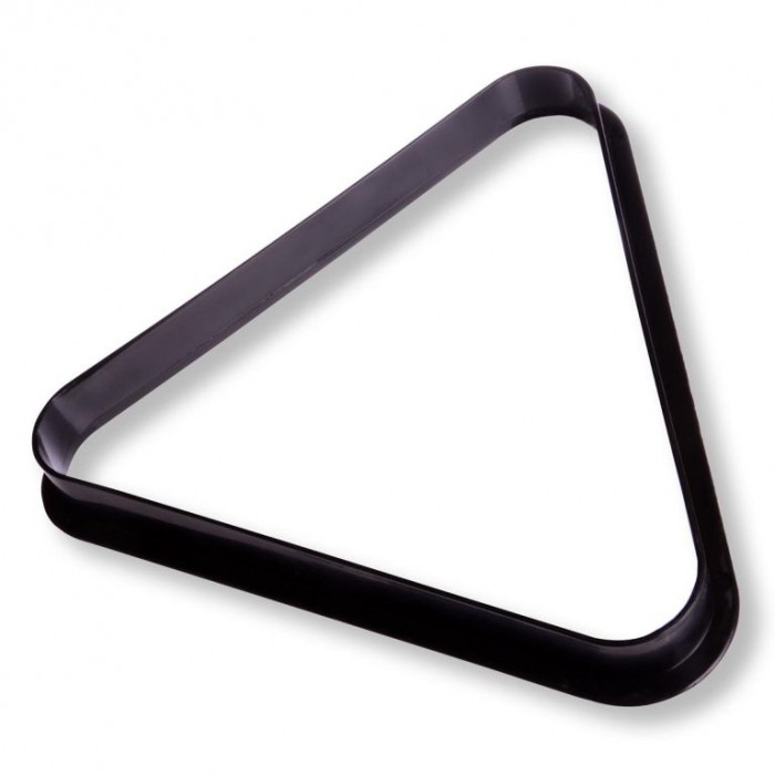 Klasický kulečníkový kulečníkový kulečníkový trojúhelník vyrobený z plastu v černé barvě.