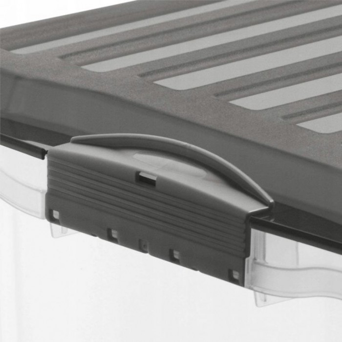 Úložný box o objemu 70L. Transparentní box + šedé víko. Víko je opatřeno klipy proti nežádoucímu otevření. Kvalitní materiál a provedení.