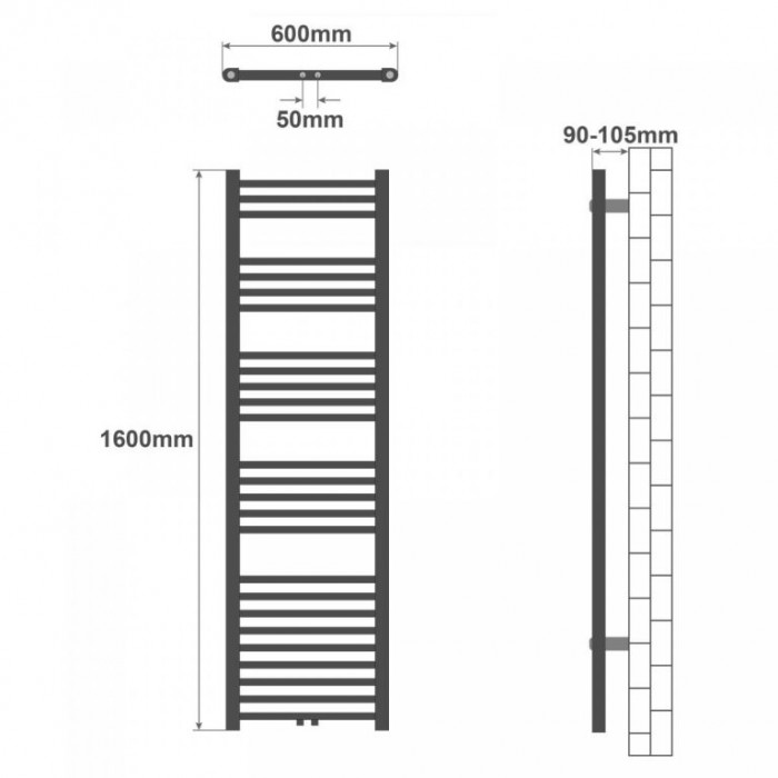 AQUAMARIN Vertikální koupelnový radiátor, 1600 x 600 mm