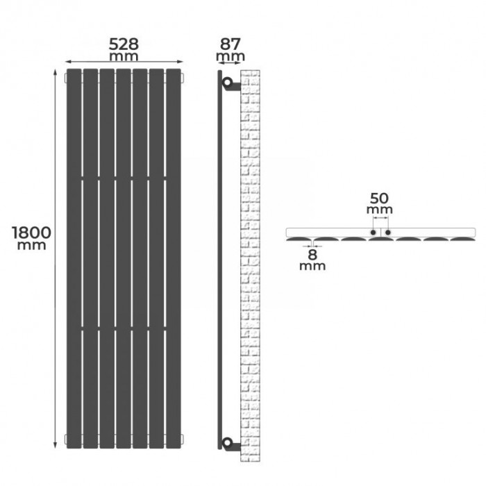 AQUAMARIN Vertikální radiátor 1800 x 528 x 52 cm, bílý
