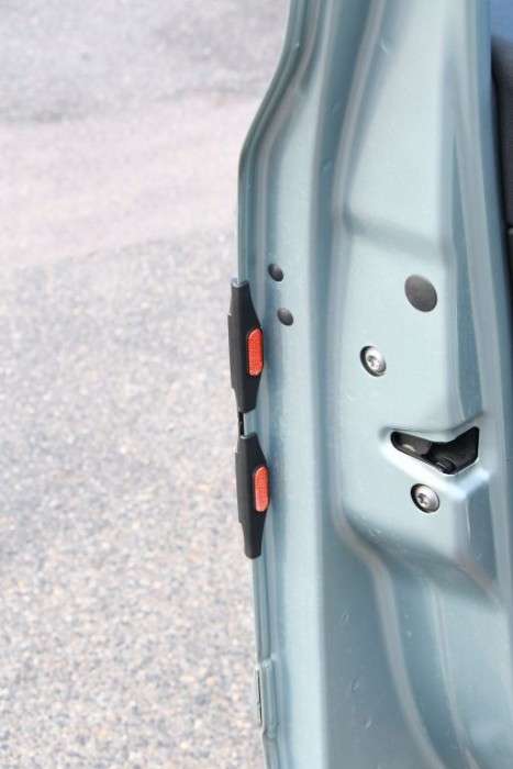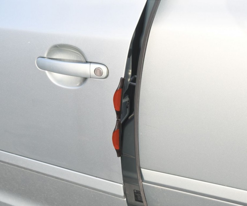 Sada dvou kusů plastových chráničů s reflexními odrazkami pro dveře vozidel. Chraniče jsou tvarovány z plastu, prostřední část je zůžena a díky tomu je možné chránič ohýbat. K připevnění není třeba žádného nářadí, chrániče se pouze nasadí na hranu dveří vozidel, lze nasadit i na tvarovaná místa.