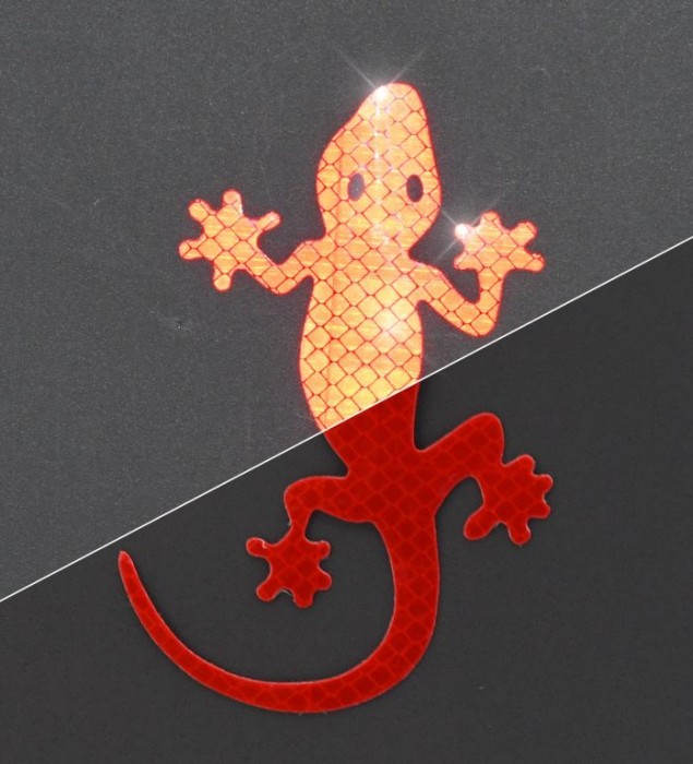 Samolepící dekor s reflexními vlastnostmi v podobě Geckona (ještěrky). Samolepka je vhodná k nalepení na očištěné neporézní povrchy. Dekor je možné nalepit i na mírně tvarované povrchy. Přilepení je snadné a rychlé.
