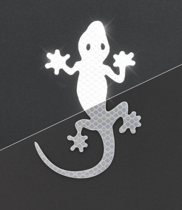 Samolepící dekor s reflexními vlastnostmi v podobě Geckona (ještěrky). Samolepka je vhodná k nalepení na očištěné neporézní povrchy. Dekor je možné nalepit i na mírně tvarované povrchy. Přilepení je snadné a rychlé.