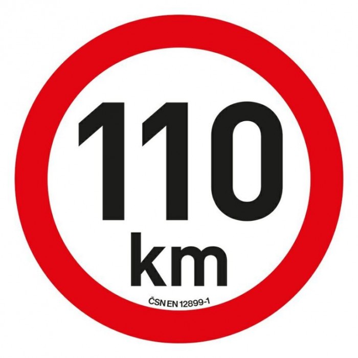 Samolepka o průměru 20 cm s označením nejvyšší povolené rychlosti v provedení z retro reflexní fólie třídy 1 dle ČSN EN 12899-1, odpovídající platnému znění vyhlášky 341/2014 Sb. Zaručujeme splnění požadavků technických a právních předpisů, zejména Nařízení vlády č. 375/2017 Sb., ČSN ISO 3864-1, ČSN ISO 3864-2, ČSN ISO 3864-3, ČSN ISO 3864-4.