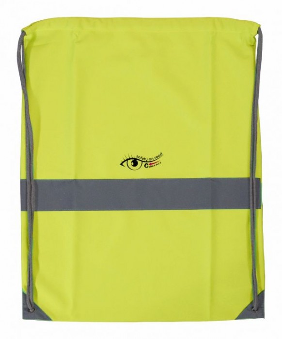Batoh výstražné barvy opatřený reflexním pruhem s vysokou odrazivostí světla. Batoh lze nosit jak klasicky přes obě ramena, tak i jako jednoduchý vak na sportovní potřeby přes jedno rameno.