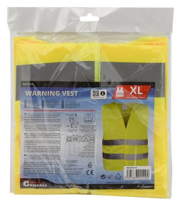 Popis: Compass Výstražná vesta EN 20471:2013 + A1:2016, žlutá, XL