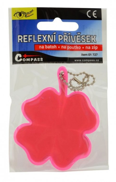Popis: Reflexní přívěšek čtyřlístek, růžový