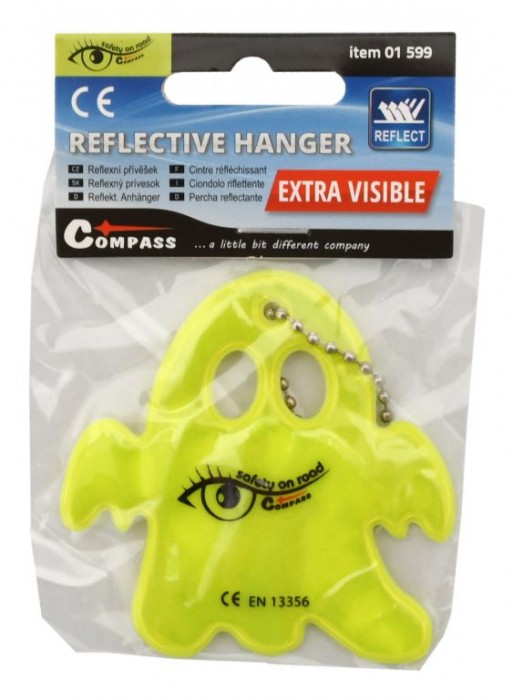 Reflexní přívěšek s řetízkem, vhodný k upevnění na oděv, školní brašnu, batoh, kapsu, nebo na zip. Na velkou vzdálenost dobře viditelný doplněk, vhodný i pro děti. Zejména za snížené viditelnosti či v šeru několikanásobně prodlužuje vzdálenost, na kterou řidič zpozoruje chodce.