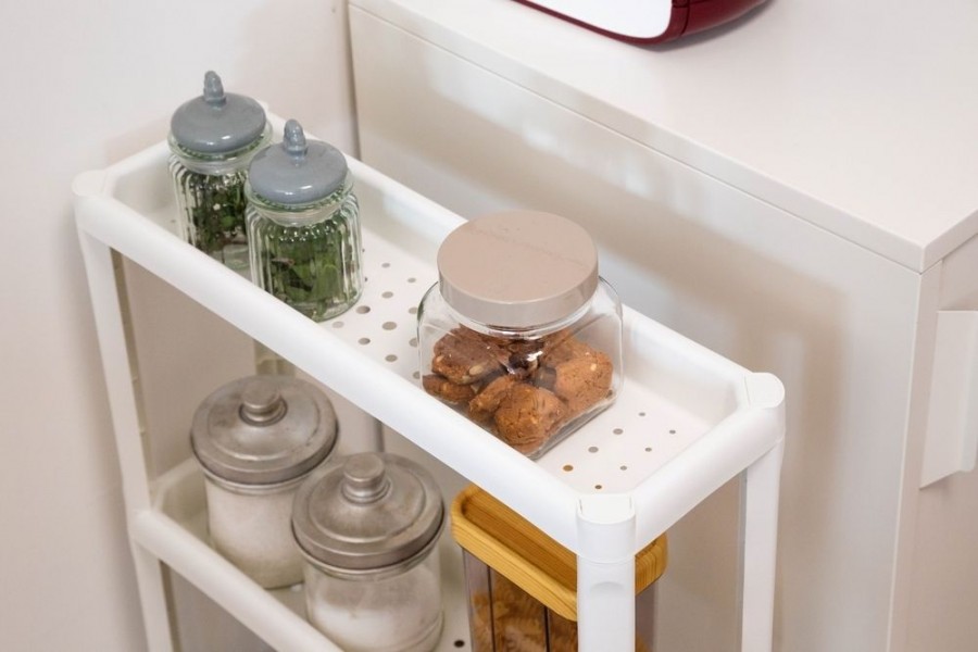 Regál je třípatrový vozík s kolečky, který představuje praktický a stylový způsob pro efektivní využití malých prostorů a pro snadnou organizaci ve Vašem domě. Nabízí dodatečný prostor pro uložení potravin, kuchyňských pomůcek či drobností v koupelně.