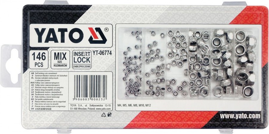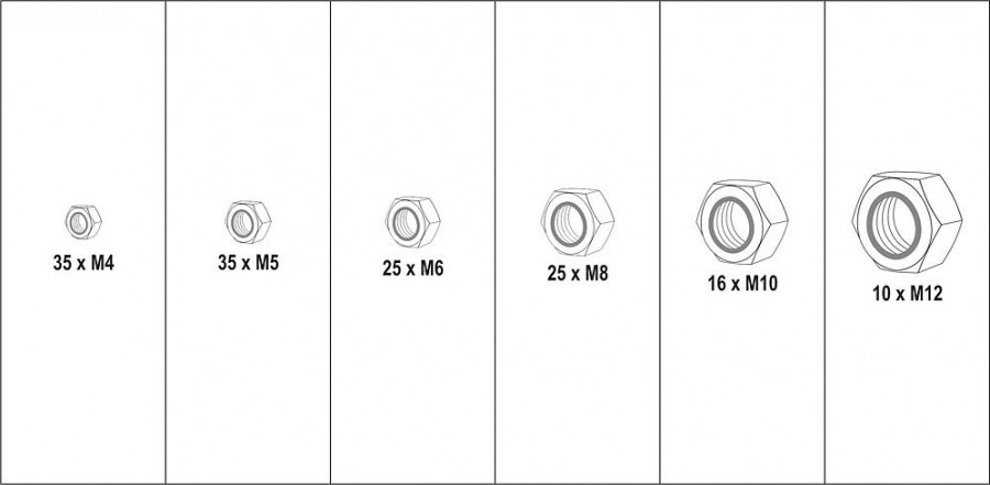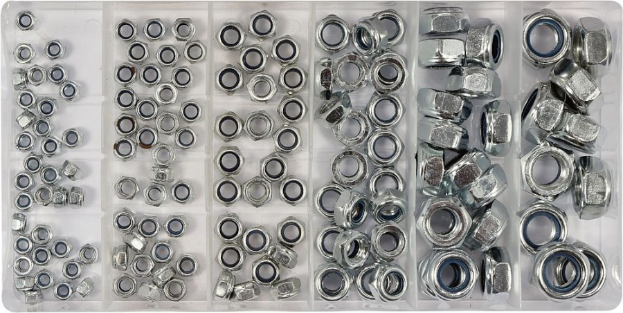 Sada 146 ks kvalitních pojistných matic s nylonem.
