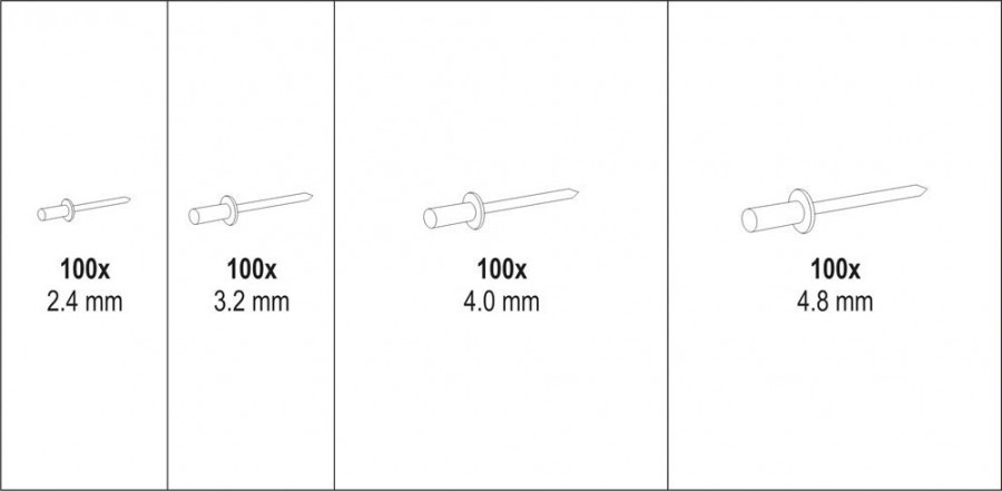 Popis: Nýt hliníkový sada 400ks (2,4, 3,2, 4,0, 4,8mm)