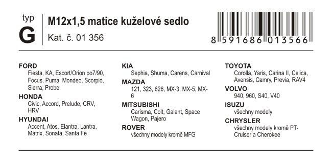 Pojistné matice kol G M12x1,50 kuželové sedlo | |