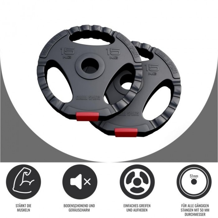 Popis: GORILLA SPORTS Sada kotoučů, plast, 2 x 15 kg, 50/51 mm
