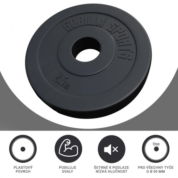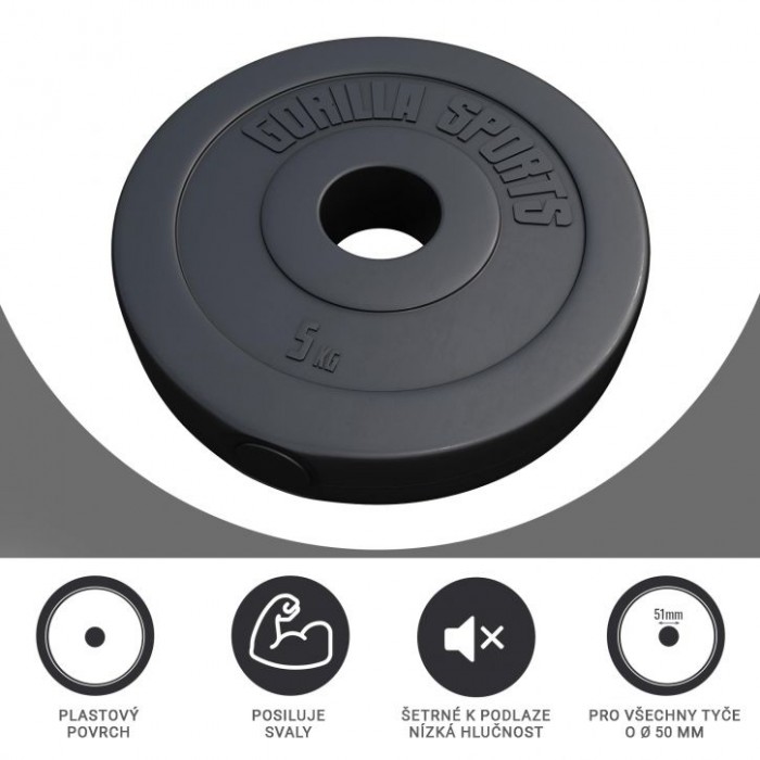 Popis: Gorilla Sports Sada zátěžových desek 4 x 5 kg + 4 x 2,5 kg
