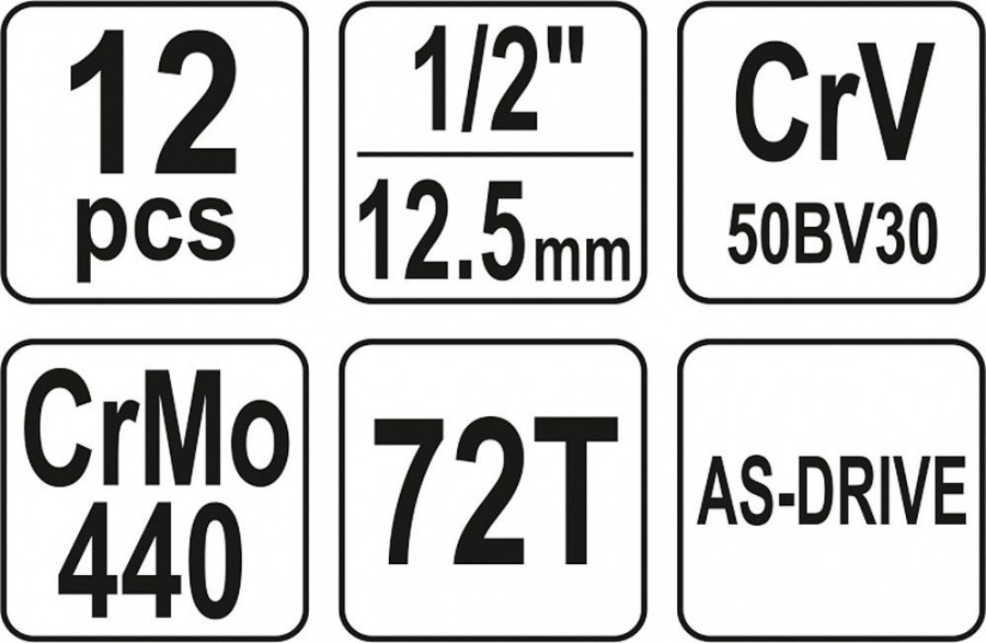 Náastavce jsou vyrobeny z kvalitní chromvanadiové oceli CrV6140 a CrV50BV30, S2 s funkcí AS-DRIVE (to jest funkce, která možňuje vyvinout větší kontaktní sílu, neboť ke kontaktu se šroubem nedochází na hranách šestihranu, nýbrž v první třetině styčných ploch. Tím nedojde tedy k poničení hlavice šroubu.)