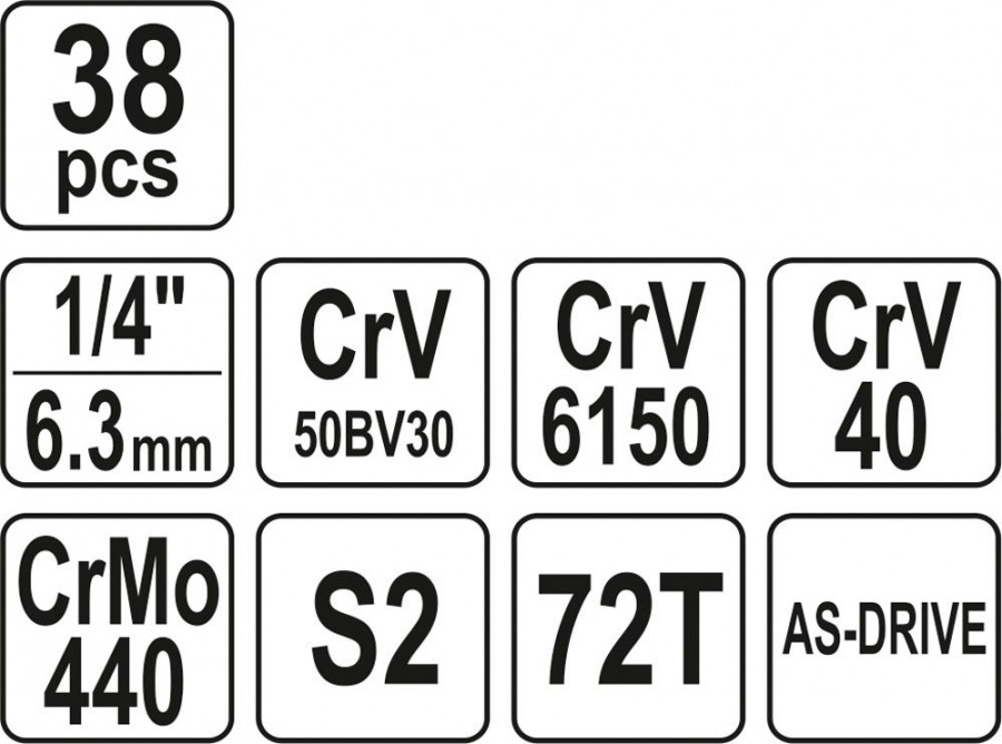 Popis: Gola sada 1/4" 38 ks XS v kufříku