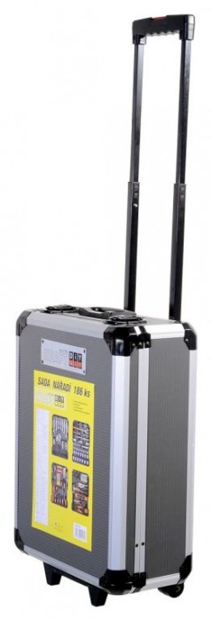 Kufřík je vybaven teleskopickým úchytem a kolečky, díky kterým je manipulace s celou sadou nářadí velice snadná.