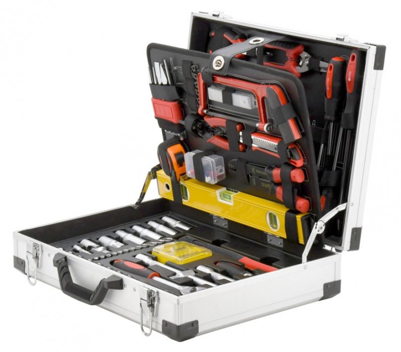 Přenosný kufr vybavený exkluzivním CR-V nářadím, včetně očkoplochých klíčů, vodováhy a dalšího nářadí uspořádaného do předem určených pozic v celkem 4 platech. Dno kufru je opatřeno vložkou pro ráčnu s 45 zubým mechanismem a jejími nástavci a příslušenstvím, dále kladivem a ráčnovým šroubovákem včetně bitů. Vrchní část kufru je osazena šroubováky různých rozměrů, včetně elektrikářské zkoušečky. Dále nejběžněji používanými kleštěmi, včetně kombinovaných, štípacích a střihacích. Mezi dnem a vrchní částí je pevně vložené oboustranné plato s očkoplochými klíči, nastavitelným klíčem, pilníkem a imbusovými klíči z jedné strany. Z druhé strany jsou umístěny vodováha, metr, nůž s náhradními čepelemi, pilka, důlčíky, kleště na segerovky a elektrikářské kleště včetně konektorů.