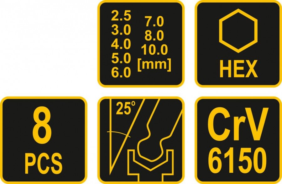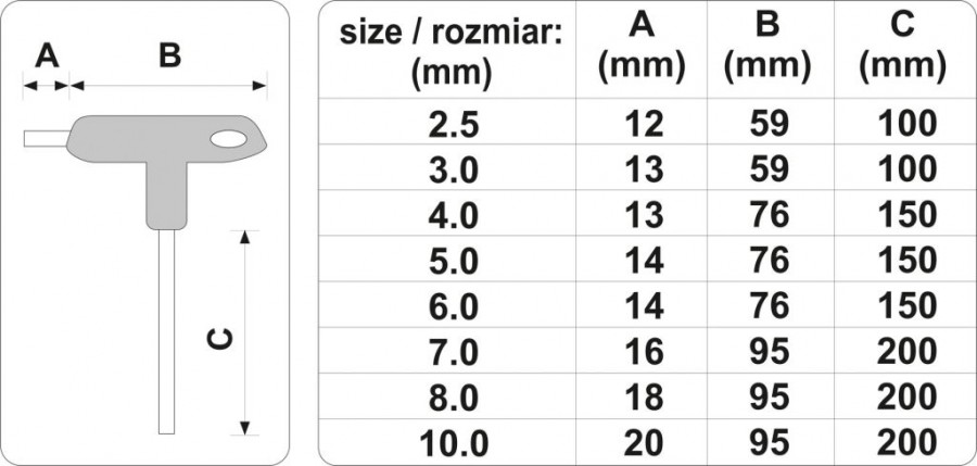 - velikost klíčů: 2,5; 3; 4; 5; 6; 7; 8; 10 mm