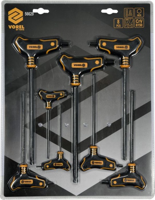 Vysoce kvalitní ocel CrV 6150 zaručuje dlouhou životnost a odolnost vůči opotřebení. Boční čep s držadlem usnadňuje manipulaci i s rezavými šrouby. Sada obsahuje osm velikostí klíčů pro univerzální použití. Povrchová úprava chrání nářadí před korozí a prodlužuje jeho životnost.