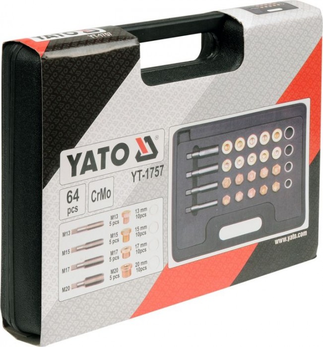 Sada na opravu závitů vypouštěcích šroubů olejových van. Sada obsahuje opravu pro čtyři typy závitu: M13, M15, M17, M20 a to jednostupňové závitníky z CrMo oceli, 5 ks šroubů a 10 podložek odpovídajících rozměrům pro daný závit.