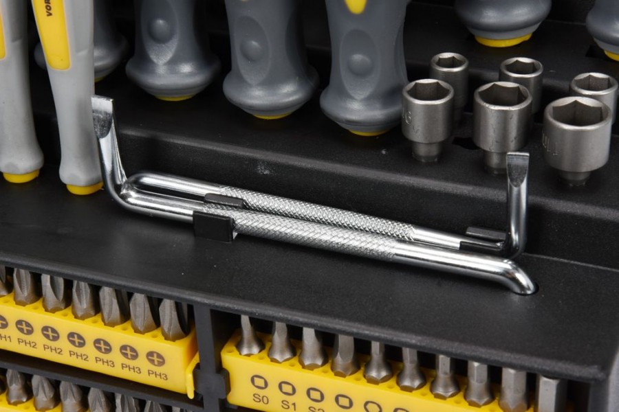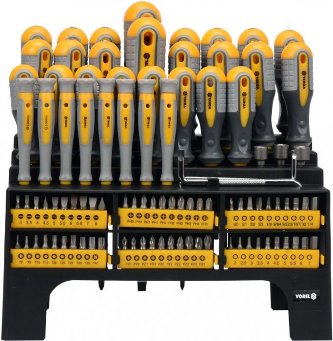 Sada šroubováků Vorel 60750. Vyrobeno z vysoce kvalitních materiálů. Široká škála velikostí zajišťuje všestranné použití a schopnost dosáhnout těžko dostupných míst. Odolná CrV 6150 ocel, Ergonomické, protiskluzové PP a TPR rukojeti.