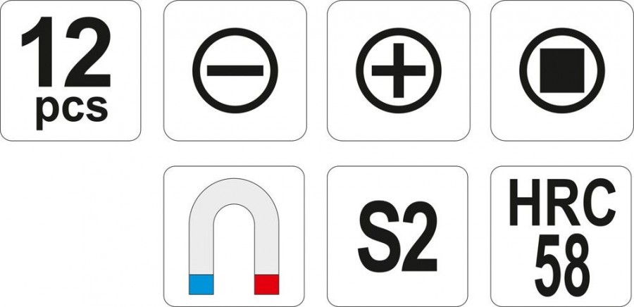 Popis: Sada šroubováků 12ks, - 3-8mm, + PH0-PH3, SQ1, SQ2