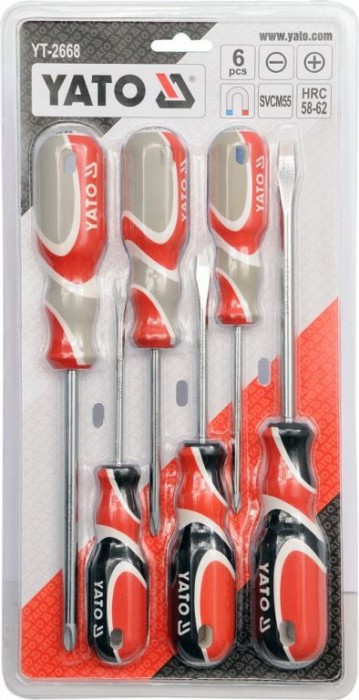 Sada 6 profesionálních magnetických šroubováků, vyrobených z vysoce kvalitní chrom-molybdenové oceli, která zaručuje dlouhou životnost a vysokou odolnost proti deformaci. Hroty šroubováků byly pískovány a zmagnetizovány, což umožňuje bezpečné uchopení hlavy šroubu. Rukojeť je vyrobena z dvouvrstvého kompozitního plastového materiálu, má trojúhelníkový průřez zajišťující výbornou ergonomii. Otvor v rukojeti umožňuje zavěšení jednotlivých šroubováků.