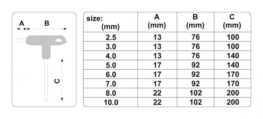 Sada klíčů v provedení T šroubovák, osazený 2x imbus klíčem s kulovým zakončením (1x dlouhý, 1x krátký) a ergonomickou rukojetí, díky které je jeho použití opravdu snadné. Vyrobeno z oceli S2, která zaručuje dlouhou životnost. Balení obsahuje klíče 2,5, 3, 4, 5, 6, 7, 8 a 10 mm.