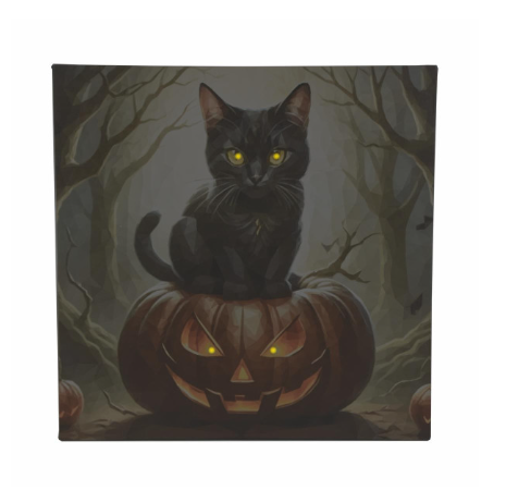 Nástěnná malba kočka na dýni, 4 LED, 40 x 40 cm