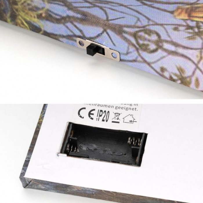 Vytvořte si příjemnou atmosféru pomocí osvětlených LED obrazů. Motiv romantického horského jezera při západu slunce se 4 teplými bílými LED diodami a 40 integrovanými studenými bílými optickými LED diodami vykouzlí ve vašem domově příjemnou náladu a atmosféru. Vysoce kvalitní fototisk na plátno je nejen krásnou dekorací ale také skvělým dárkem. Malby upoutají pozornost v každé místnosti. Díky provozu na baterie (bateriový box je spolu s vypínačem integrovány do rámu na zadní straně) můžete obraz umístit kamkoliv. Na zadní straně obrazu je připraven úchyt pro zavěšení.