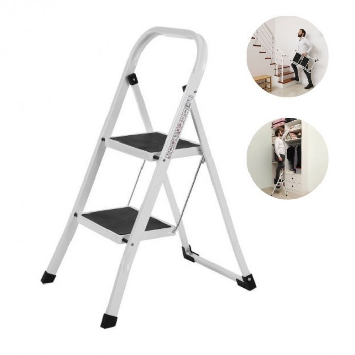 Skládací schůdky 2 stupně, nosnost 150 kg, bílé