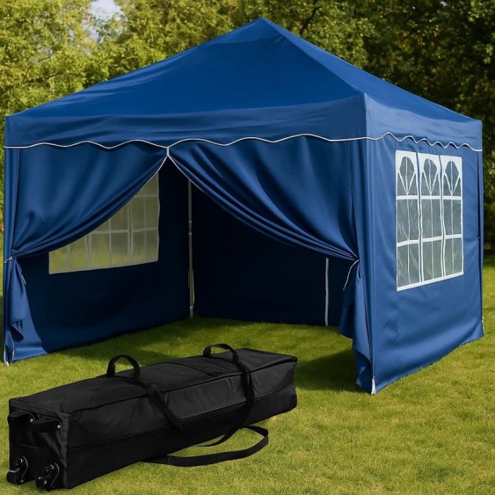 Popis: Zahradní nůžkový párty stan 3×3 m modrý s bočnicemi