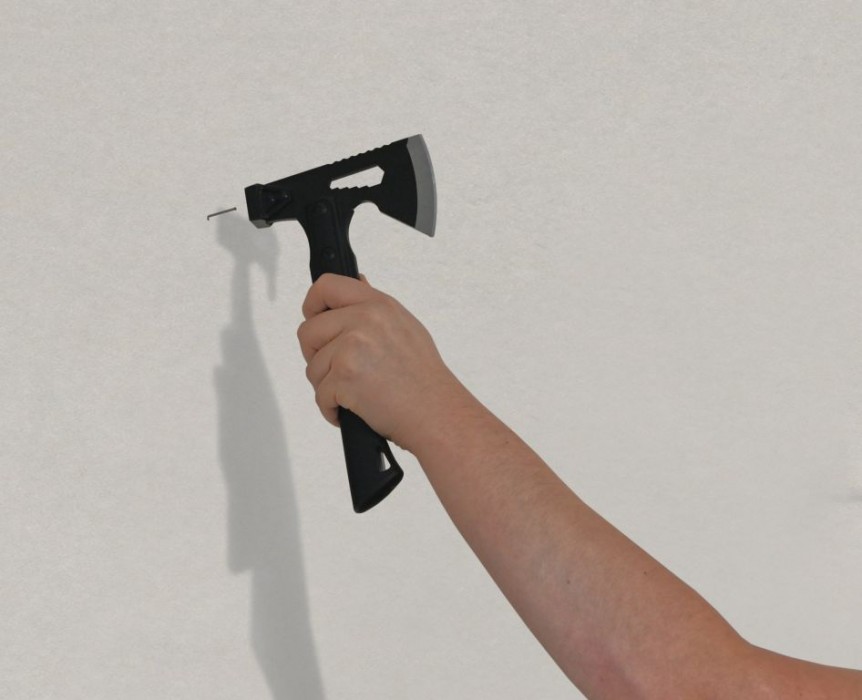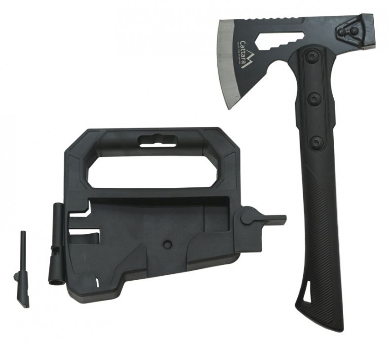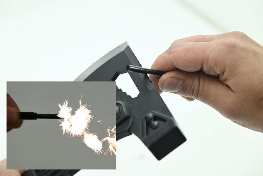 Čelní strana sekery je opatřena vroubkováním, které je užitečné pro použití spolu s hořčíkovou tyčkou, součástí čepele je rovněž univerzální klíč na matice. Opačná strana nástroje je zakončená kladívkem s plochou 2 x 2,7 cm.