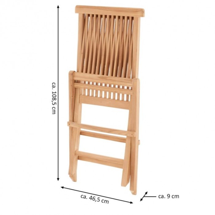 Toto dřevo je charakteristické svým četným žilkováním a obsahem éterických olejů, které mu zaručují odolnost proti větru a dalším vlivům počasí. Týk je pro svou vynikající odolnost oblíben již po staletí i v lodním stavitelství. Díky zaobleným hranám a úzkým lištám je židle velmi pohodlná i bez polštáře. Židle je skládací a umožňuje snadné uskladnění. Teak se vyznačuje odolností proti povětrnostním vlivům a je proto ideální pro venkovní použití.
