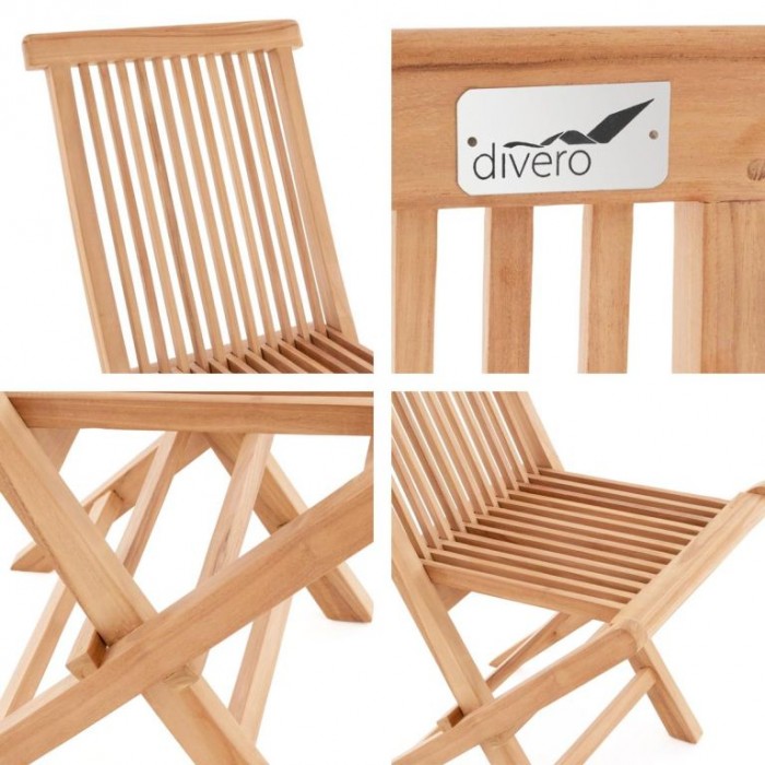 Popis: DIVERO Sada 4 skládacích židlí z týkového dřeva, 89x46x62 cm