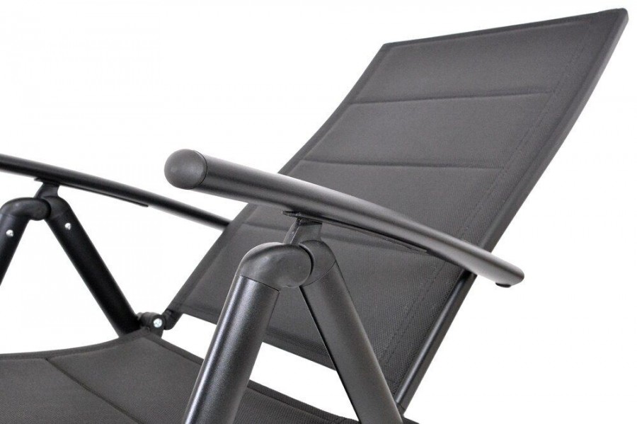 Křeslo je vybaveno kvalitní textilií 2×1 s výplní z rychleschnoucí pěny, která zajišťuje výjimečný komfort i při delším sezení. Díky polohovatelnému opěradlu si snadno nastavíte ideální pozici pro relaxaci – ať už při čtení, slunění nebo odpočinku. Křeslo nabízí až sedm různých poloh opěrky. Křeslo lze snadno složit a uskladnit, což oceníte zejména mimo sezónu nebo při cestování. Moderní elegantní design se skvěle hodí do jakéhokoliv venkovního prostředí.
