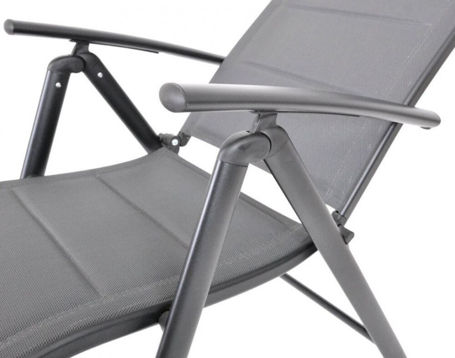 Křeslo je vybaveno kvalitní textilií 2×1 s výplní z rychleschnoucí pěny, která zajišťuje výjimečný komfort i při delším sezení. Díky polohovatelnému opěradlu si snadno nastavíte ideální pozici pro relaxaci – ať už při čtení, slunění nebo odpočinku. Křeslo nabízí až sedm různých poloh opěrky. Křeslo lze snadno složit a uskladnit, což oceníte zejména mimo sezónu nebo při cestování. Moderní elegantní design se skvěle hodí do jakéhokoliv venkovního prostředí.