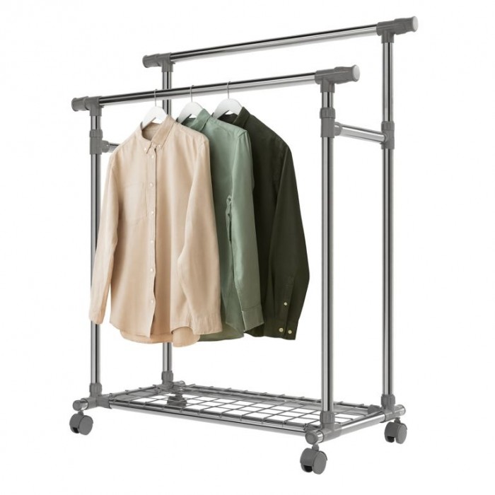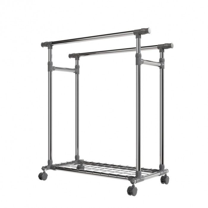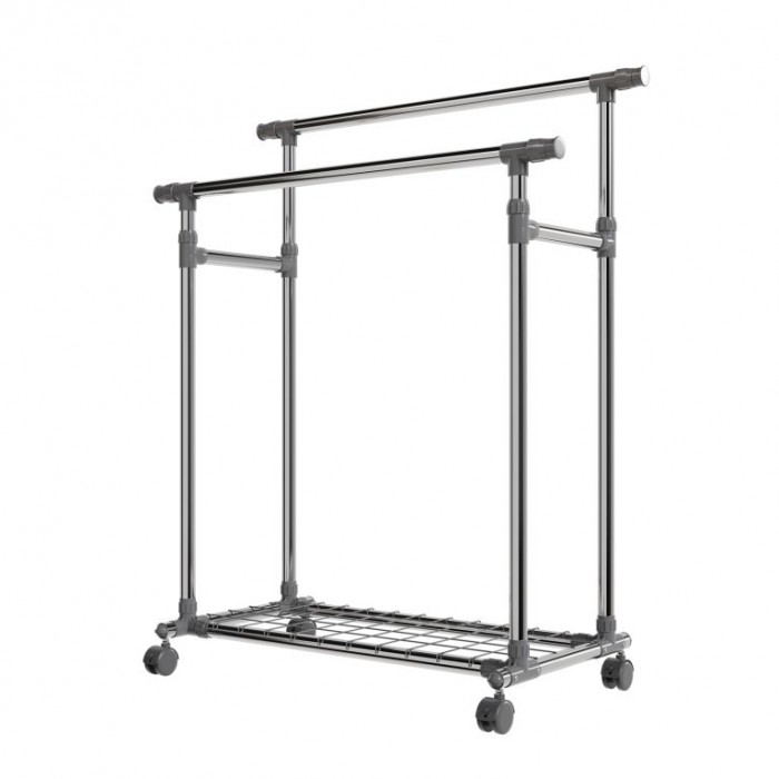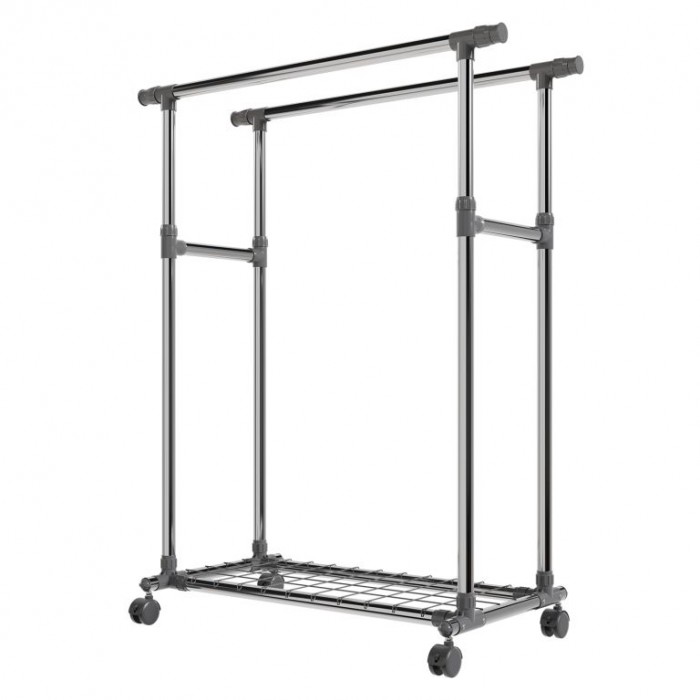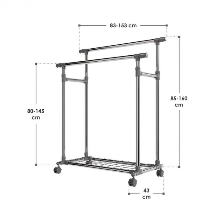 Mějte své oblečení vždy na dosah a přehledně uspořádané. Kovový stojan na oblečení na kolečkách nabízí dvě výškově nastavitelné tyče, kam snadno pověsíte bundy, kabáty i dlouhé šaty. Spodní police poslouží na boty nebo tašky a díky 360° otočným kolečkům stojan jednoduše přesunete tam, kde ho právě potřebujete. Hodí se do ložnice, chodby i šatny a pomůže udržet každodenní pořádek.