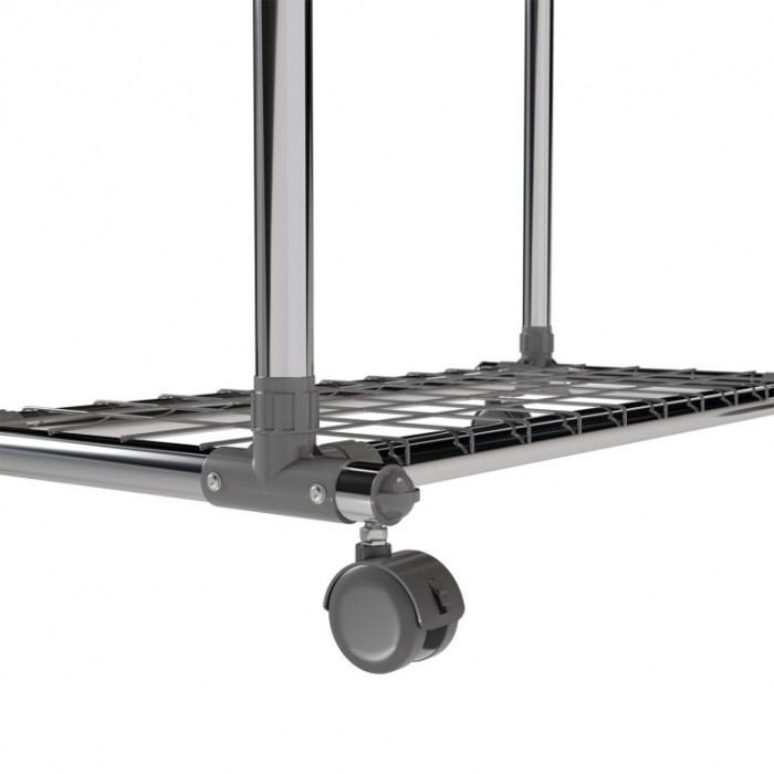 Kovový stojan na oblečení na kolečkách, 2 tyče + police