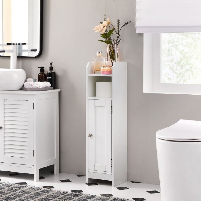 Vneste do své koupelny lehkost a pořádek s kompaktní skříňkou VASAGLE v elegantním bílém provedení. Díky čistým liniím, úsporným rozměrům a nastavitelným policím se snadno přizpůsobí vašim potřebám. Dekorace nahoře, hygienické potřeby uprostřed a osobní věci bezpečně uložené za dvířky – vše má své místo a vaše koupelna získá svěží atmosféru.