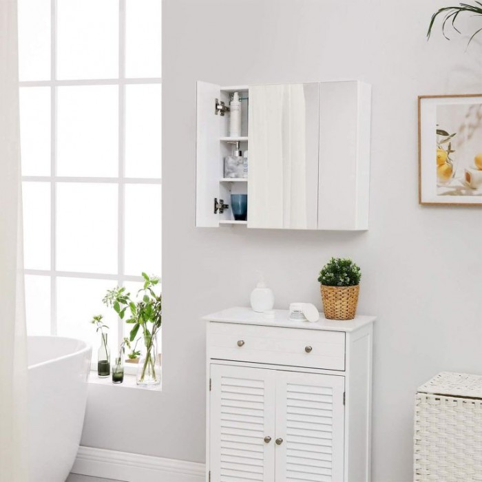 Koupelnová závěsná skříňka se zrcadlem, bílá