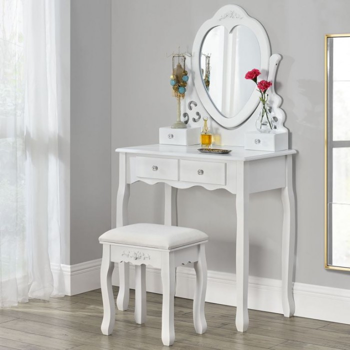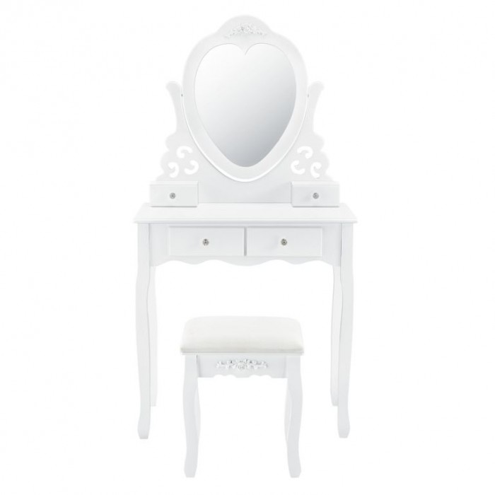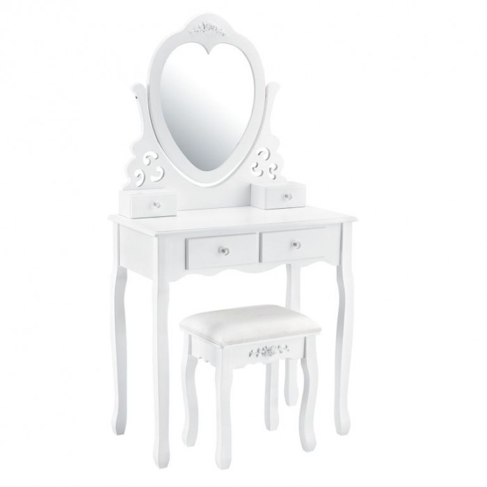 Bílý toaletní stolek Julia se srdcovým zrcadlem a taburetem